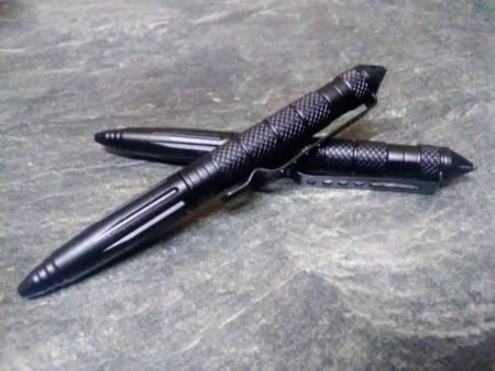 Metallstift mit Glasbrecher und Halteclip. Herausdrehbarer Mine und eine Gesamtlänge von 15 cm.